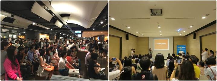 在台中誠品園道店和台北誠品信義店三樓Forum吸引大批讀者。