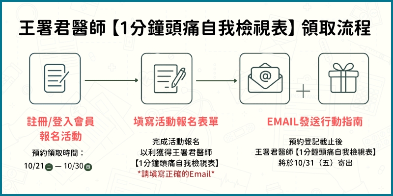 ➤10/31(五)將透過 Email 寄送【頭痛自我檢視表】