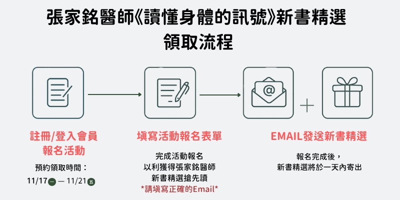 ● 新書精選內容將於收到報名成功通知信後一天內寄出,敬請留意報名電子郵件。