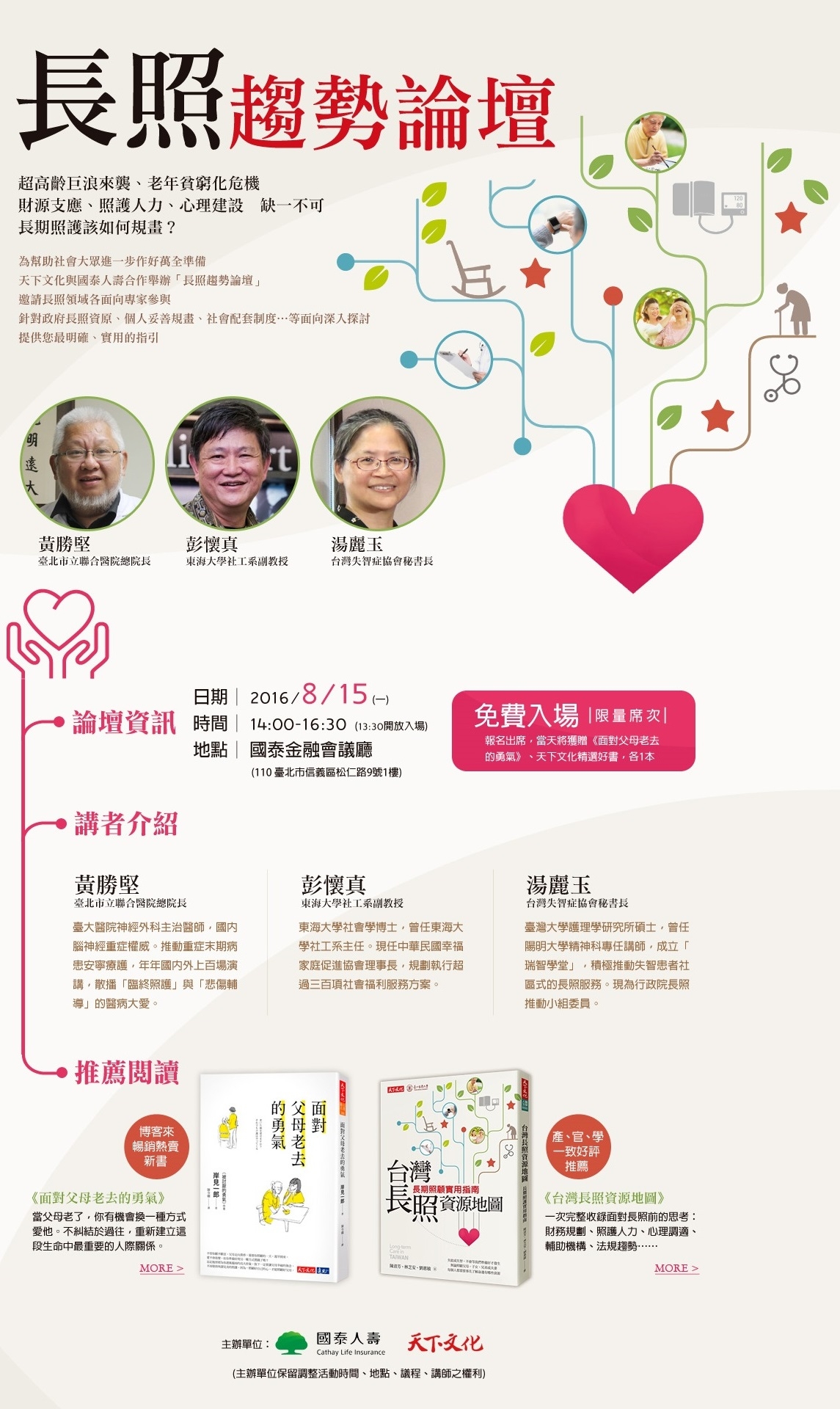 臺北市立聯合醫院總院長 黃勝堅、東海大學社工系副教授 彭懷真、台灣失智症協會秘書長 湯麗玉