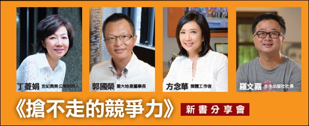丁菱娟 ( 世紀奧美公關創辦人 )、郭國榮(喬大文化基金會董事長)、方念華(TVBS主播)、羅文嘉(水牛出版社社長)