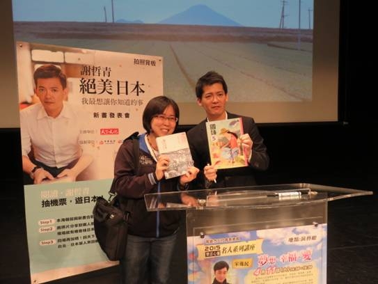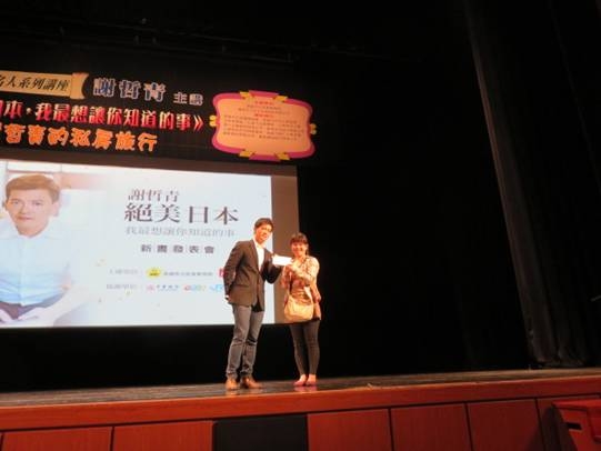 ▲ 現場抽出獲得JR pass的幸運觀眾,開心與哲青老師合照留念。