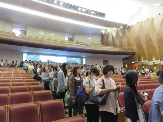 ▲ 會後聽眾井然有序排隊,等待老師的簽名紀念,簽名隊伍一路延續到演藝廳外,一連簽了兩個多小時。