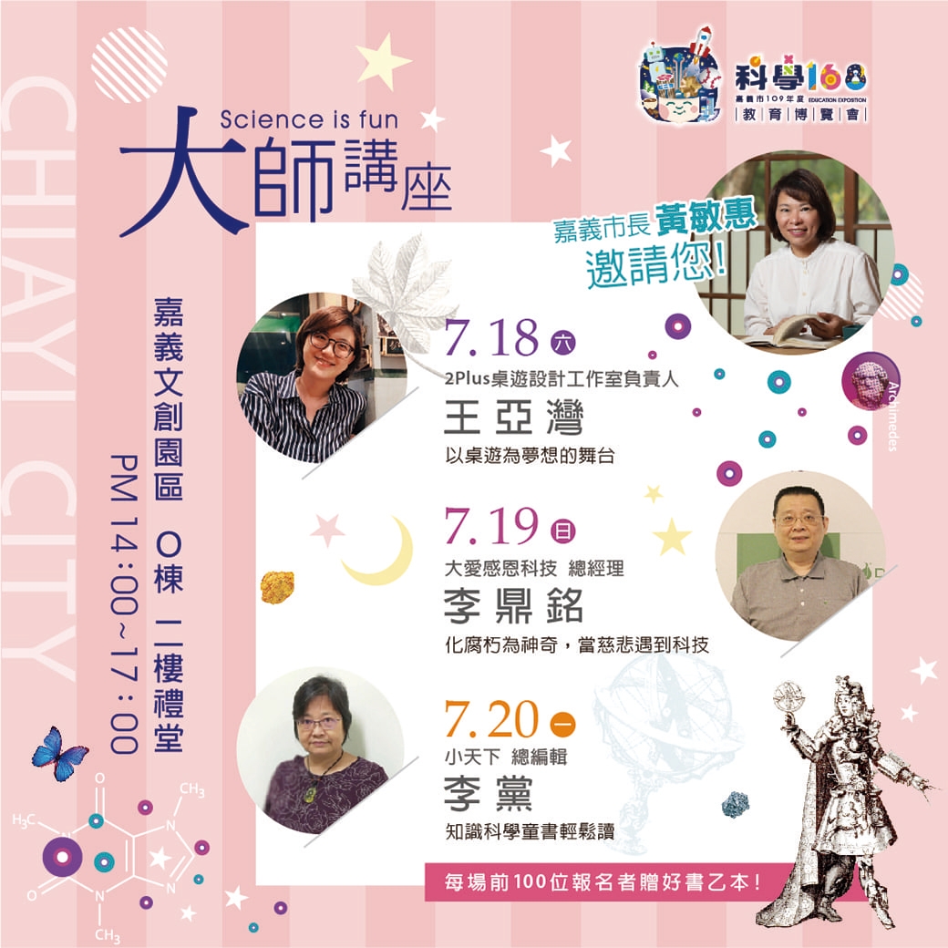 嘉義市長黃敏惠 、 天下文化總經理林芳燕,與不同領域的大師對談,邀請您共襄盛舉。