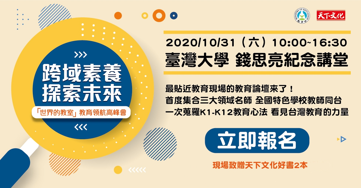 108課綱以素養導向為核心,強調以學習者為中心,培養孩子探索、自主學習進而與社會共好的能力。教育部與天下文化舉辦「世界的教室」教育領航高峰會,串聯台灣各專業領域領航員,以及全國特色課程教師的分享,共同精進教師專業技能,並為家長提供最新的教養心法。