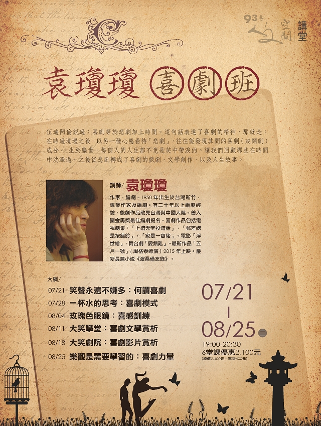 時間:2015/7/21(二)-2015/8/25(二)19:00-20:30