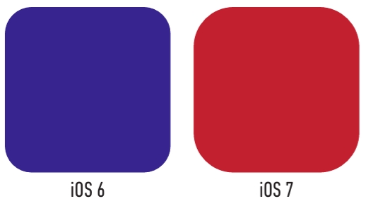 ↑ iOS 6 的應用程式圖示採用四分之一圓角(左);艾夫重新設計,使其與手機本身的圓角一致(右)。