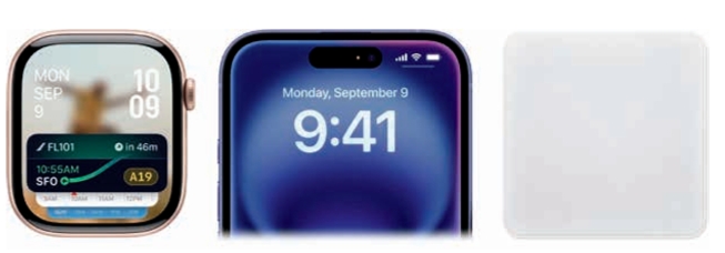 ↑ Apple Watch、iPhone 與蘋果拭鏡布的圓角尺寸各不相同。