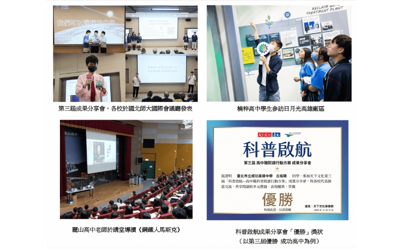 以推廣科普閱讀的精神為出發點,天下文化自 2023 年 8 月啟動「科普啟航—高中職科普閱讀行動方案」,獲得各界企業支持,累積串聯全國 45 所學校,贈閱超過 20,500 冊科普好書,與各校師長共同協力,讓閱讀不再只是「輸入」,更激發學生思考、實踐,以多元形式「輸出」,包含:創意短片、科學實驗、Podcast、創作歌曲等,讓課外閱讀,依然能在高中校園帶來學習樂趣與啟發。